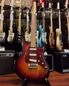 19 OctSquier Bullet H-2 Japan 1983 — une vraie pièce de début de série “SQ”, fabriquée chez Fujigen, avec deux humbuckers pour un son plus costaud. Format compact, finition sunburst… disponible chez Guitar Street.
