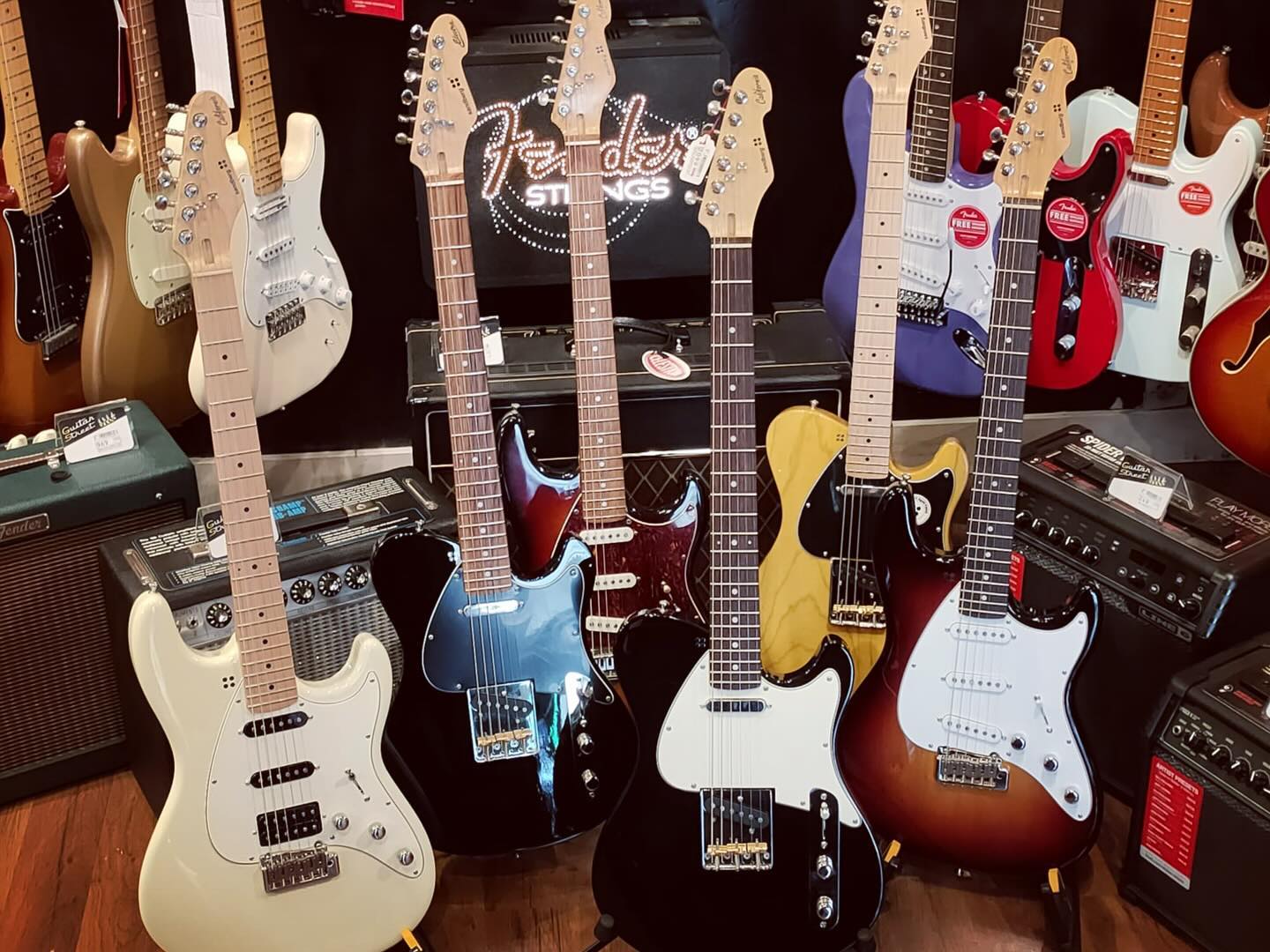 Petit tour de notre boutique.Électriques, acoustiques, ukulélés, effets, amplis, cordes…et plus encore 🤯