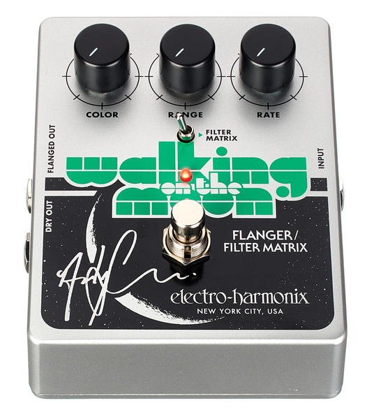 La pédale Electro-Harmonix Walking on the Moon rend hommage aux sons de flanger scintillants classiques d’Andy Summers , utilisés lors des premiers jours de The Police. Cette édition signature est en réalité une recréation quasi-sonore d’une Deluxe Electric Mistress originale dans un châssis compact .
