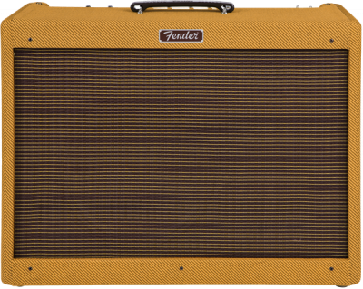 - Revêtement du baffle marron à motif Nubtex™ et grille en tissu de couleur blé vieillie typiques des amplis Fender® des années 1960