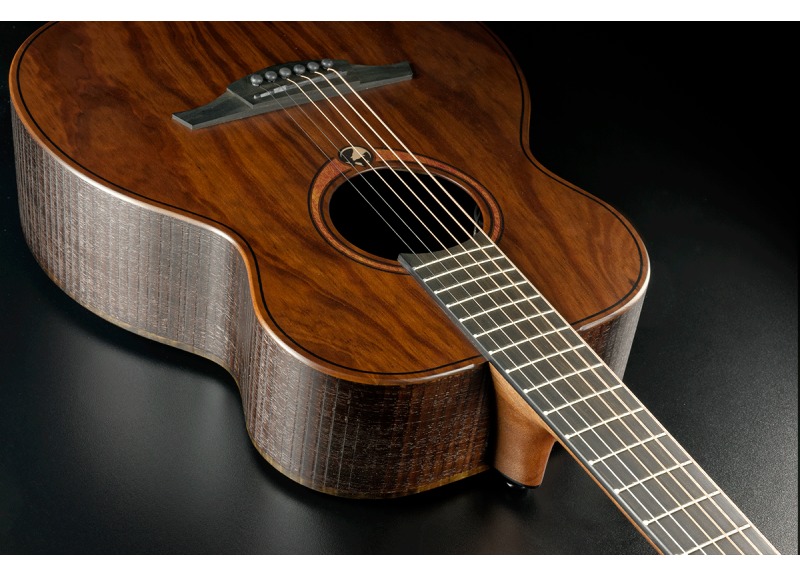 Sa taille unique et ses courbes sont adaptées pour offrir portabilité et confort sans perdre en richesse musicale. Le manche en Khaya, combiné avec une largeur de sillet de 43 mm et une touche de 20 frettes fabriquée en BrankoWood brun, offre une jouabilité fluide. La forme travel compacte favorise une prise en main aisée et un transport facile. Le dos arrondi de la série Sauvage produit un son plein et sans pareil. Comme la SAUVAGE-T, la Sauvage-TE produit un son plein, enrichi par la table en BrankoWood pâle massif et le dos et éclisses en eucalyptus fumé brut de scie avec un dos arrondi. Le BrankoWood offre une chaleur tonale et une projection similaires aux bois de lutherie traditionnels tout en étant plus durable. Sa densité et sa résonance créent un son équilibré qui convient à une grande variété de styles de jeu.