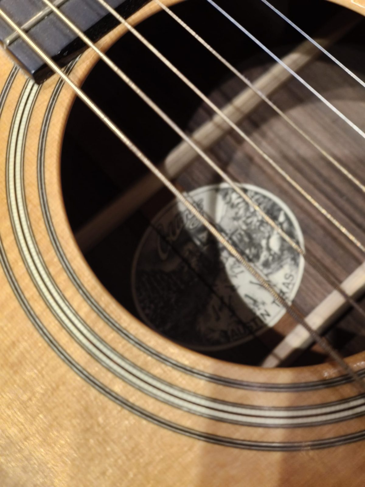 Avec plus de dix ans de maturation, le bois s’est ouvert : la guitare offre une richesse harmonique et une ampleur que seules les belles acoustiques jouées régulièrement développent.