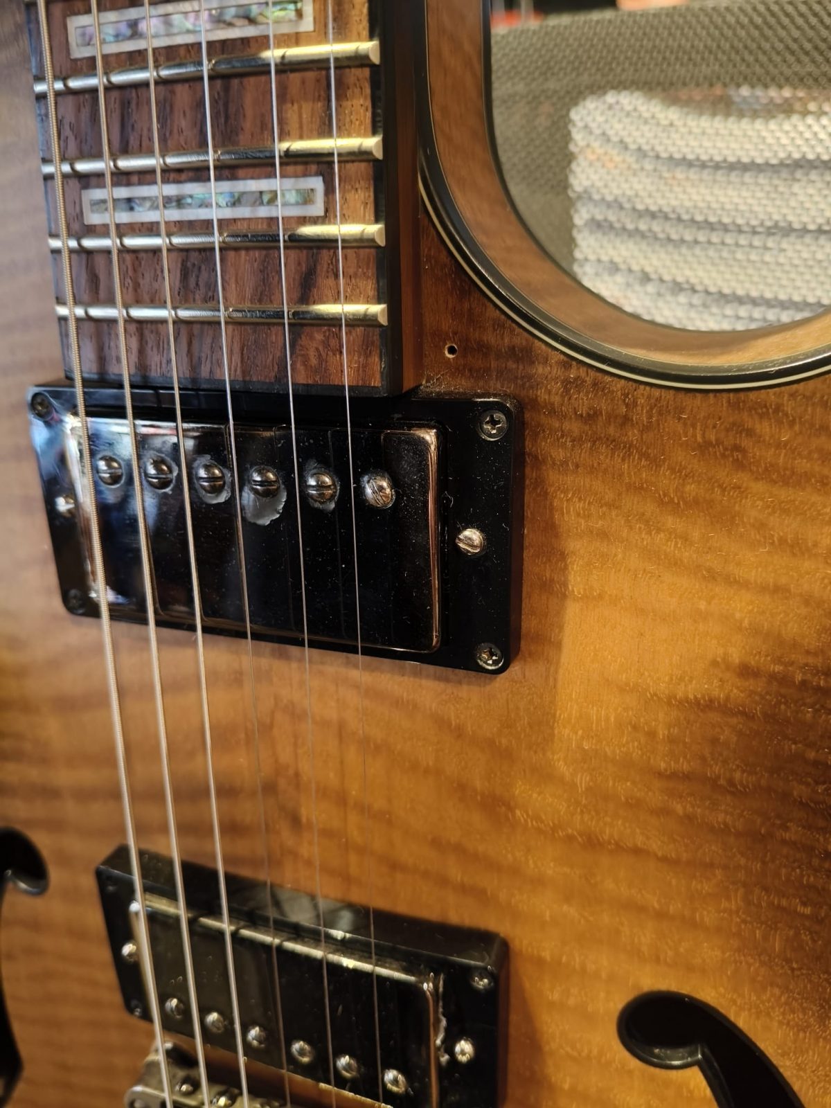 Les deux micros humbuckers Ibanez ACH offrent un son rond et équilibré, capable de passer du clean soyeux à des saturations bluesy ou rock léger.