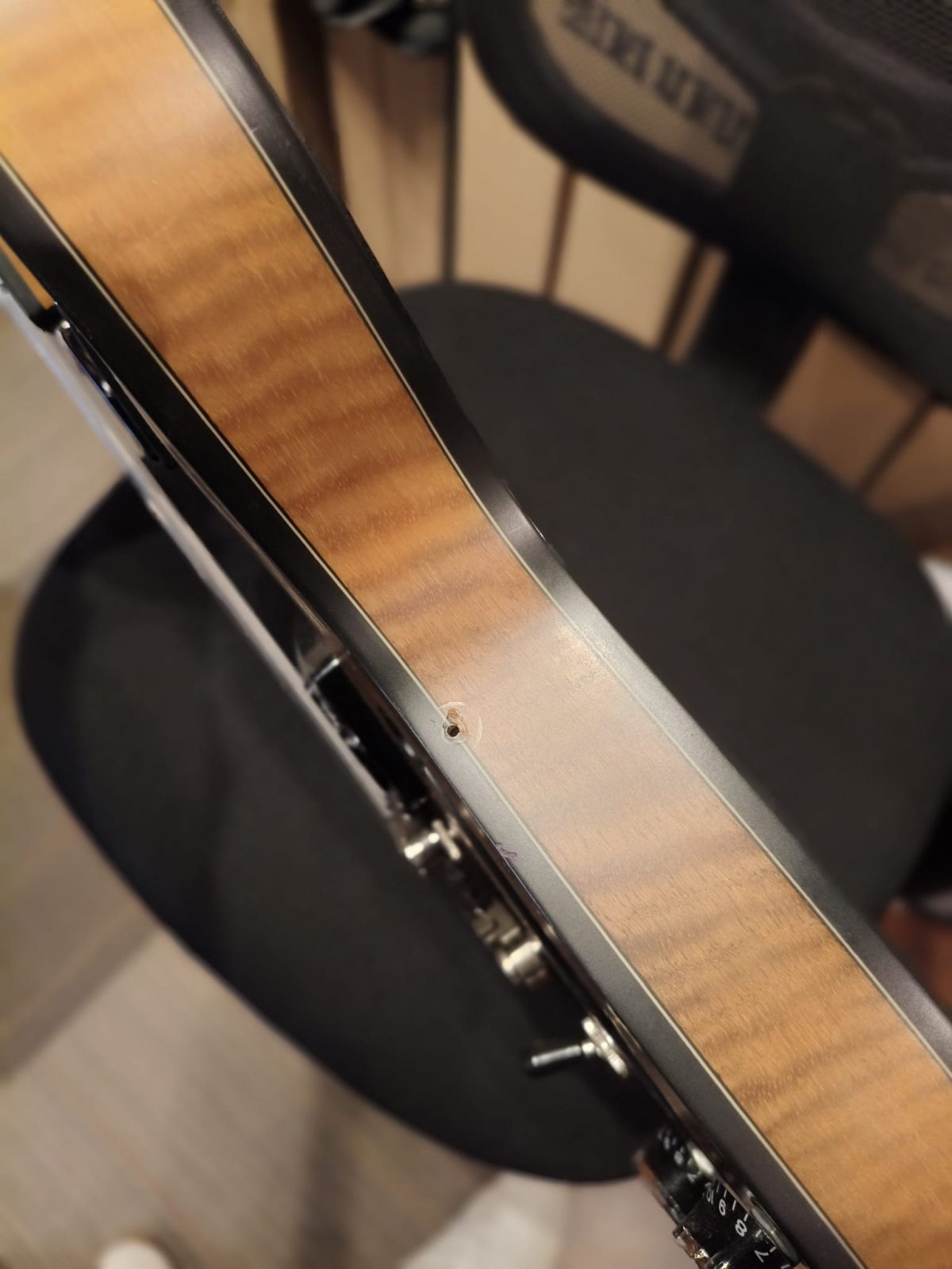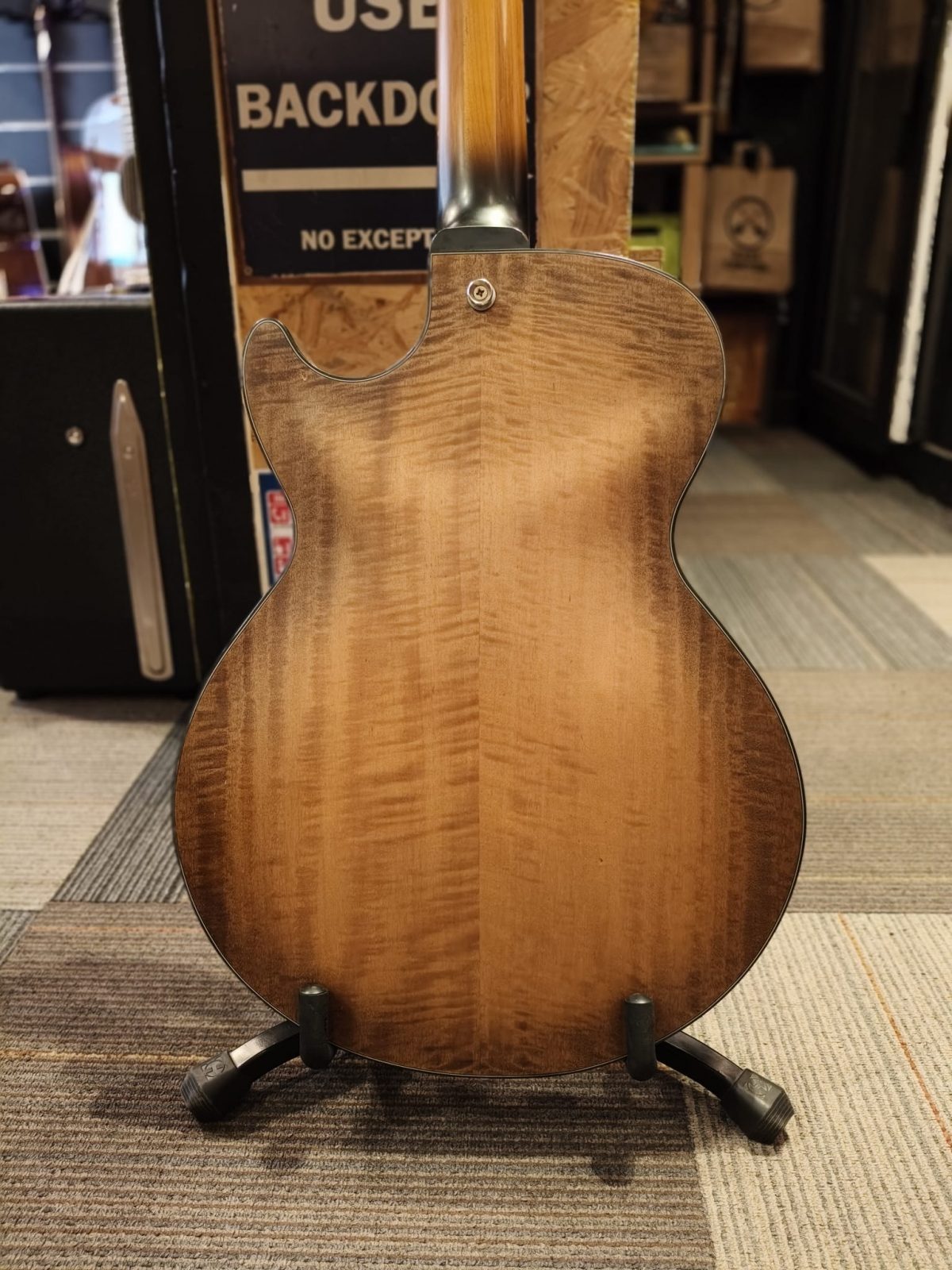 La finition Antique Burst Flat met en valeur le veinage du bois, avec un rendu satiné discret et chaleureux.