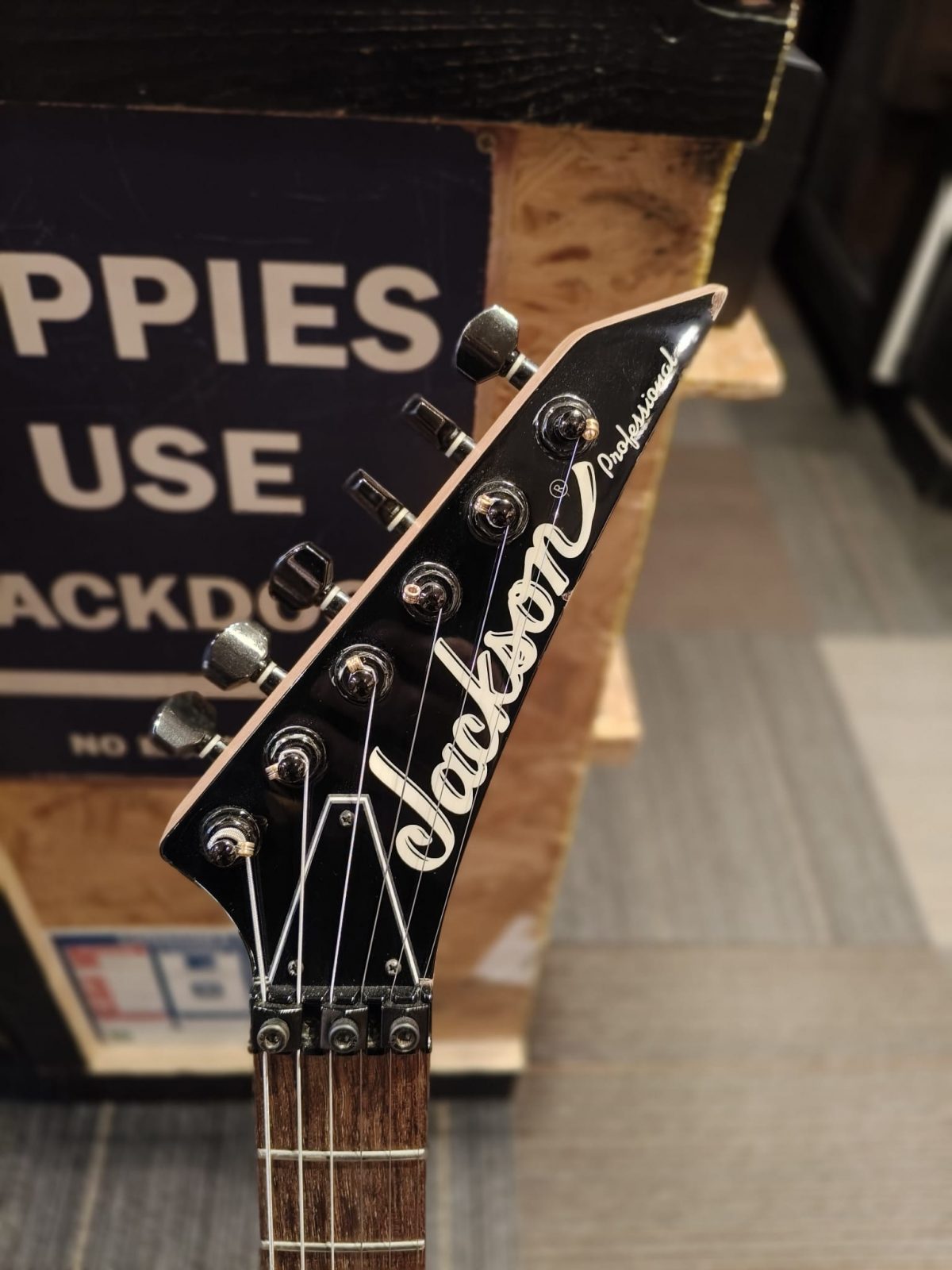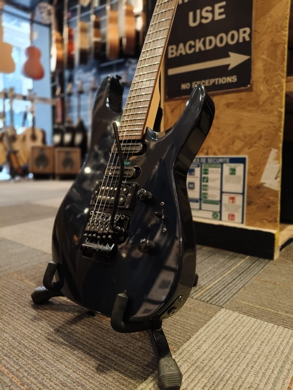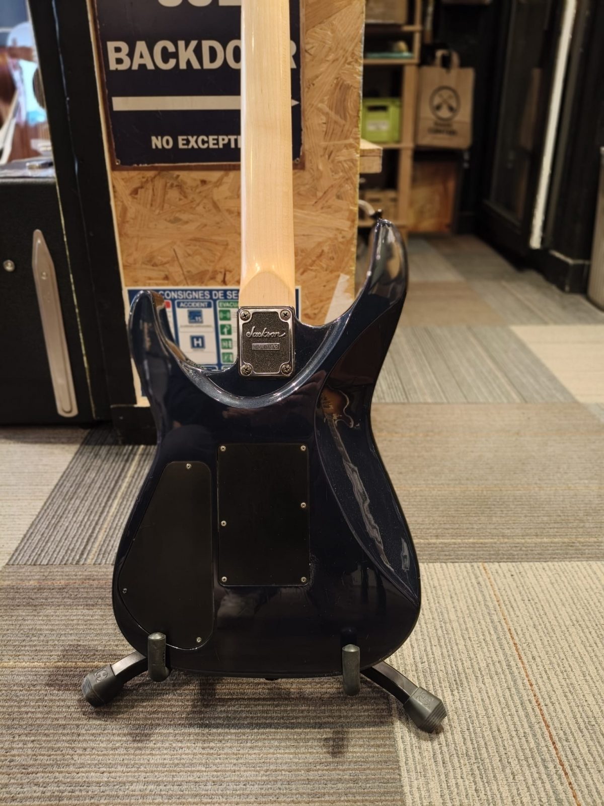 La Jackson Fusion Pro est un modèle japonais haut de gamme des années 90, réputé pour sa lutherie précise, sa polyvalence et son manche court 24.75″, plus compact que la plupart des RG ou Dinky.