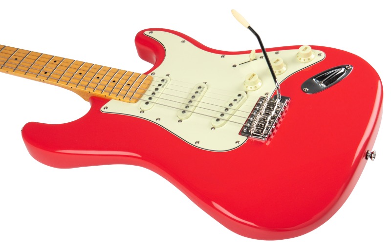 Les micros single coil délivrent une palette sonore classique, avec des graves définis grâce au corps en tilleul et des médiums-aigus présents caractéristiques de l’érable. Le sélecteur 5 positions permet d’explorer les positions intermédiaires pour des sonorités plus nasales et percutantes, complété par 1 potentiomètre de volume et 2 de tonalité .